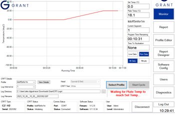 Grant CRFT程控降溫儀標(biāo)準(zhǔn)組件包括CRFT主機(jī)(含訂購的控溫適配器一個)、帶電源適配器24V直流供電單元、USB線纜和Grant CRFT Software(與Windows 10 or Windows 11電腦聯(lián)機(jī)時進(jìn)行升降溫曲線設(shè)定和運(yùn)行數(shù)據(jù)管理)。